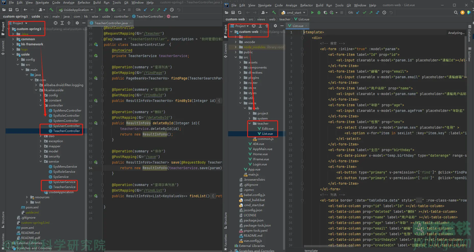 (3)custom-web,前端代码项目,初始先执行 【npm install】 命令安装依赖,安装完成