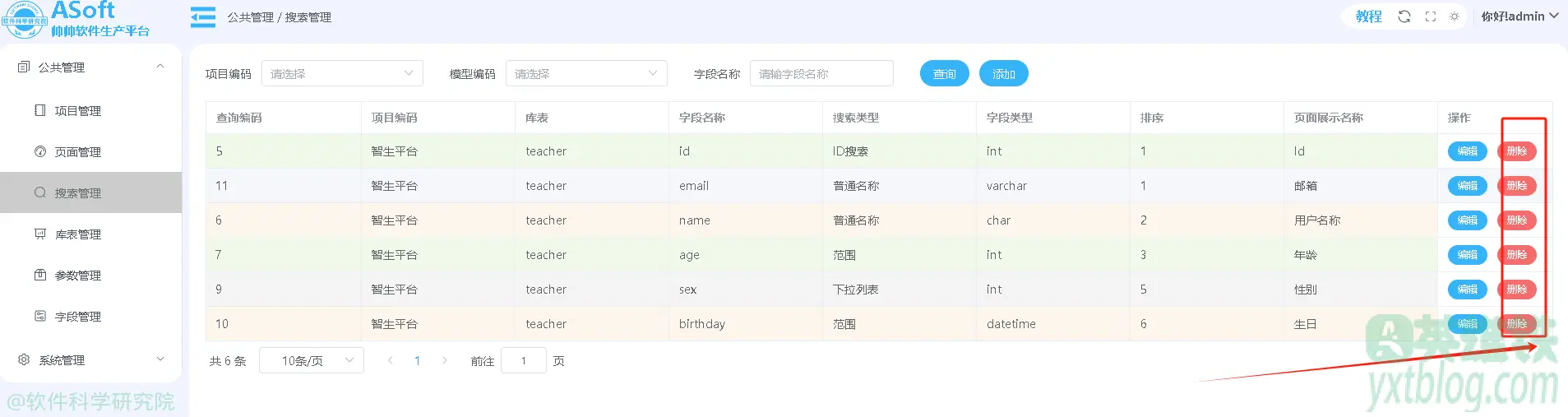 不需要搜索的字段删除即可