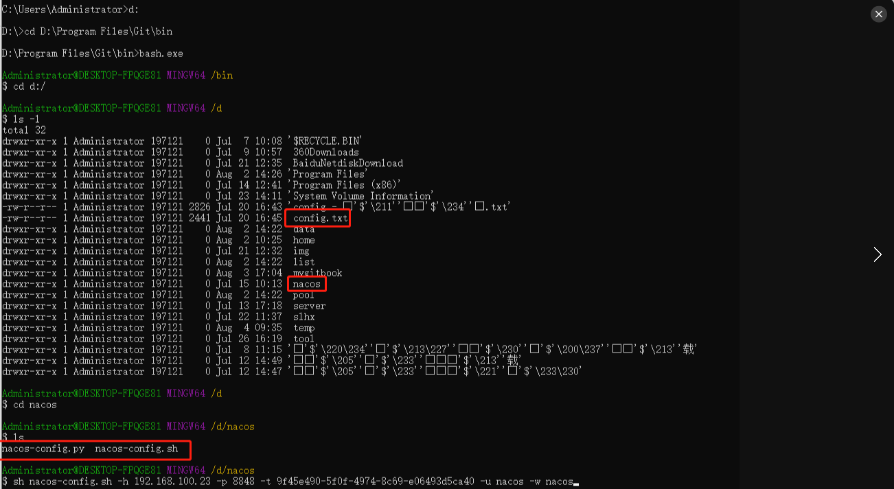 sh nacos-config.sh -h 192.168.100.23 -p 8848 -t 9f45e490-5f0f-4974-8c69-e06493d5ca40 -u nacos -w nacos